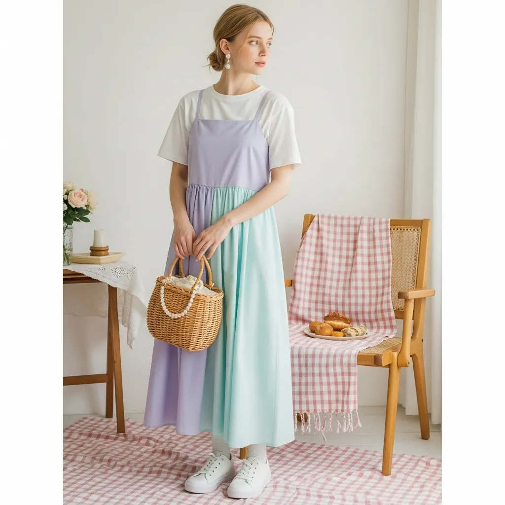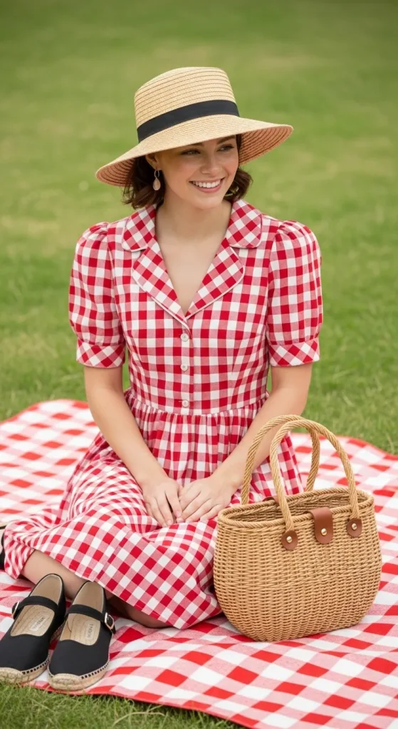 - How to Style It: Play up the vintage charm with classic Mary Janes or espadrilles. The absolute must-have accessory for this look is a rustic basket bag it completes the authentic, picture-perfect picnic aesthetic.