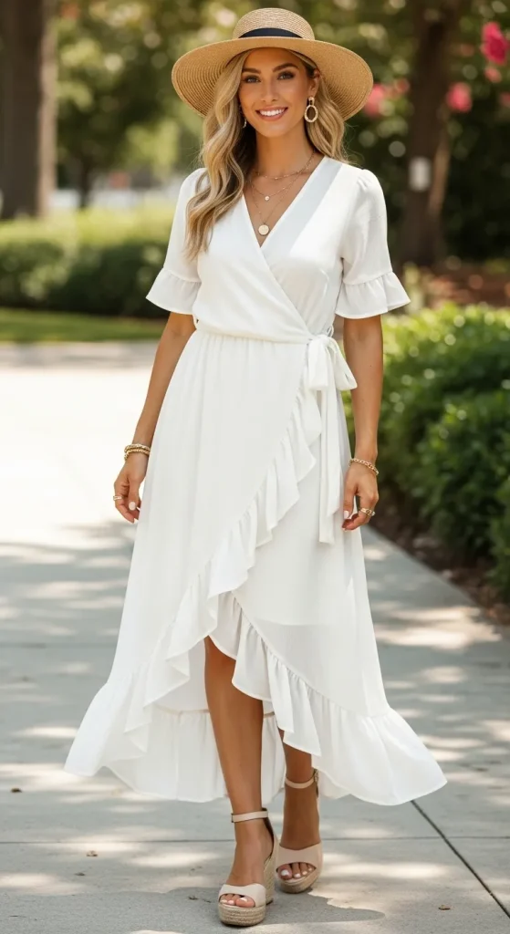 - Why It Works for a Picnic: The wrap dress is a champion of comfort and style. Its adjustable tie-waist ensures a perfect, comfortable fit, while the flowing ruffles add beautiful movement and a romantic touch. The silhouette is forgiving and allows for easy sitting.