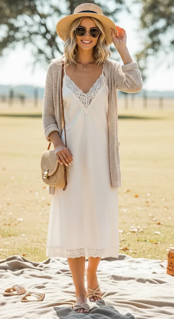 - Why It Works for a Picnic: While it feels luxurious, a slip dress can be surprisingly practical. Its fluid silhouette is comfortable and non-restrictive. It’s also the perfect base for layering if the weather changes.