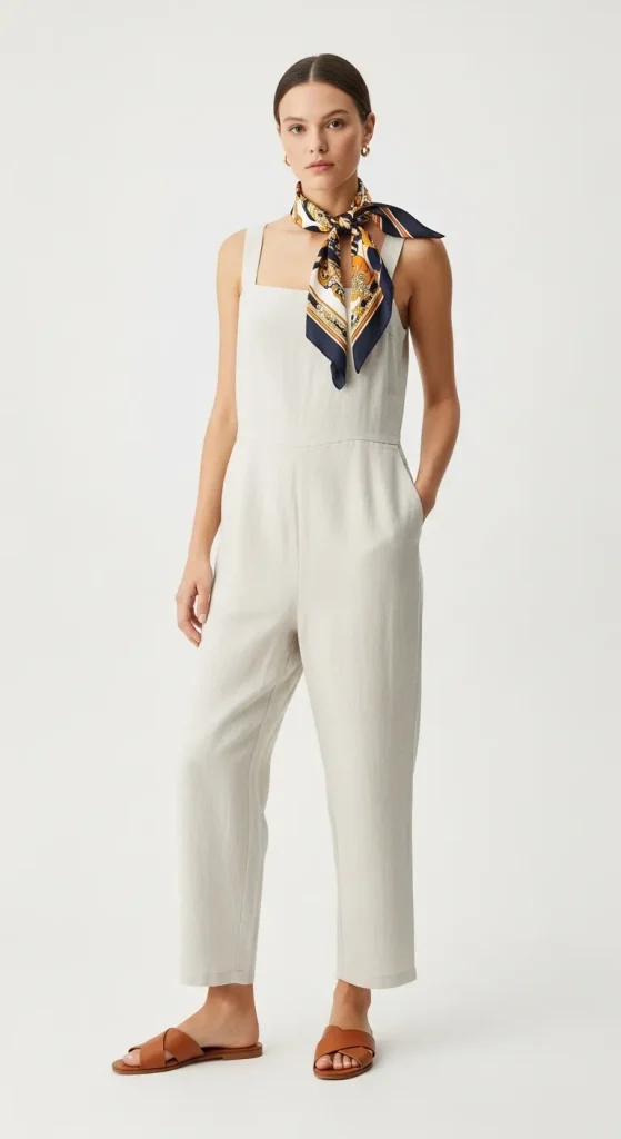 - How to Style It: This look is all about effortless minimalism. Pair it with flat leather slide sandals or simple slip-ons. Add a pop of color and personality by tying a vibrant silk scarf around your neck or in your hair.