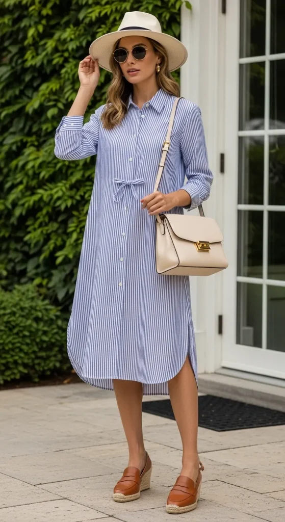 - Why It Works for a Picnic: A shirtdress offers classic tailoring in a comfortable, lightweight package. A simple stripe pattern, like classic blue and white, feels nautical and perfect for a day outdoors. The button-front design allows you to adjust your coverage.