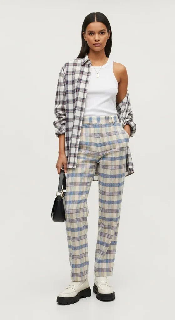 • Body Positivity Lens: Choose the plaid piece in a silhouette you already love. A well-fitting pair of plaid trousers or an A-line plaid skirt can be a fun and flattering addition to your wardrobe.