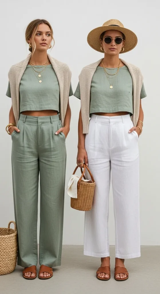 • Key Pieces: A matching linen top and bottom (wide-leg pants or shorts).