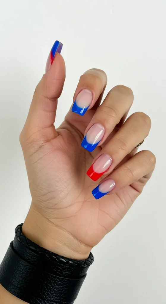 A seamless blend of two or three school colors across the nail. The strategy is to wear bold, spirited colors in an elevated, artistic way. It’s more sophisticated than simple stripes.