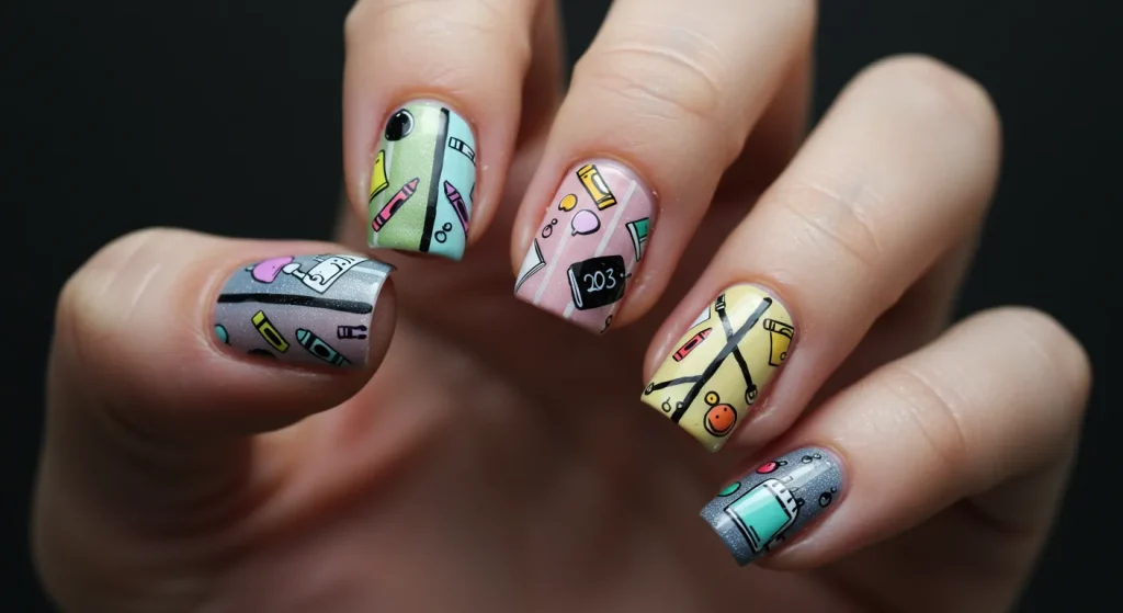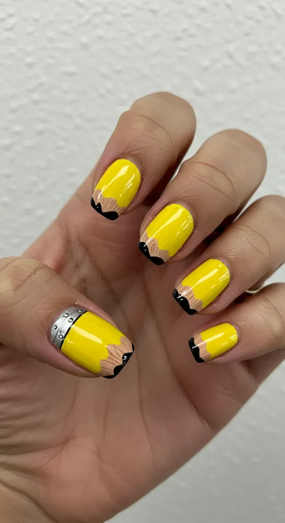 A bright yellow nail, a silver band, and a pink tip. An exact replica of a No. 2 pencil. The strategy is pure, unadulterated nostalgia. It’s a playful, iconic symbol of school.