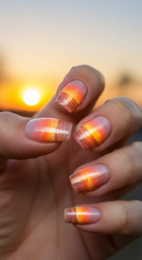 1. Sunset Aura Nails