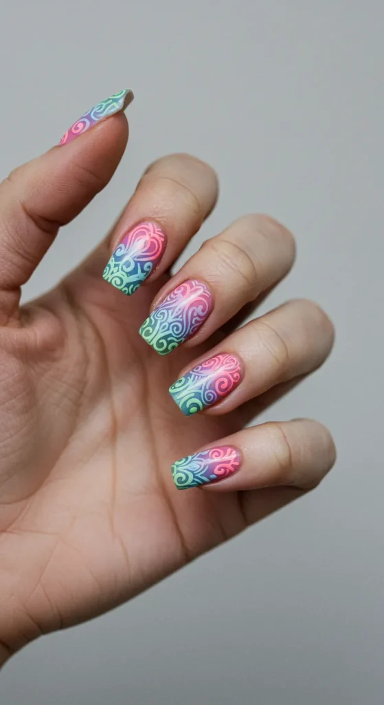 This gives you a pop of color that’s more like a watercolor wash than a loud, opaque statement. It’s often done as a gradient, fading from the sheer neon at the cuticle to a more concentrated color at the tip. It’s the ghost of summers past, and it’s hauntingly cool.