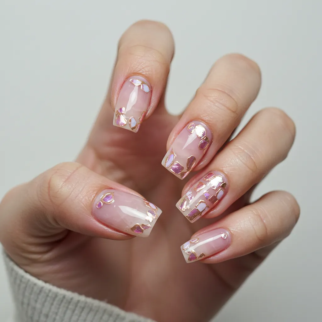 Rose quartz is the stone of universal love. This design channels that energy – soft, healing, and unconditionally loving. It looks ethereal and sophisticated, like you’re carrying good vibes right on your nails.
