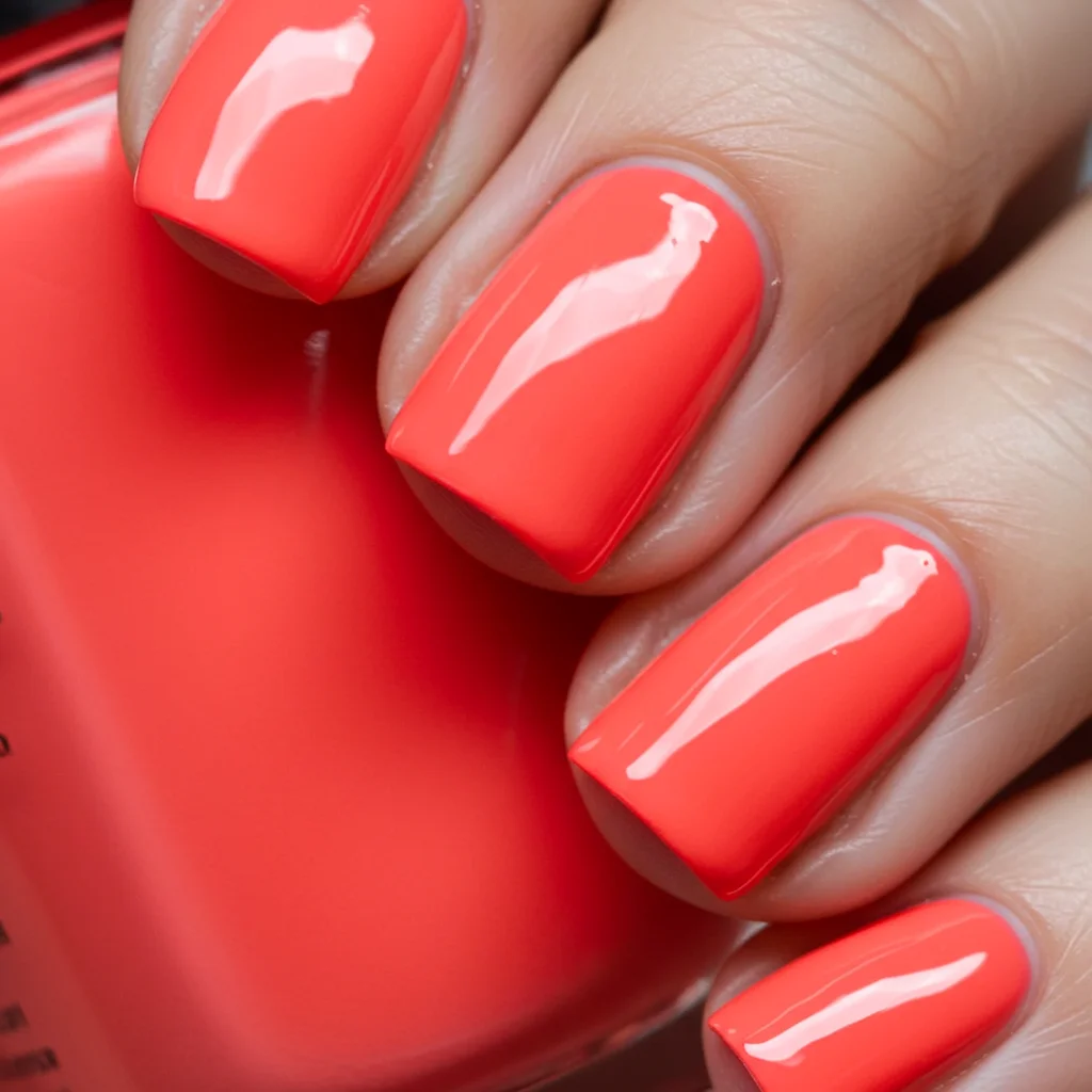 11. Glossy Coral Nails