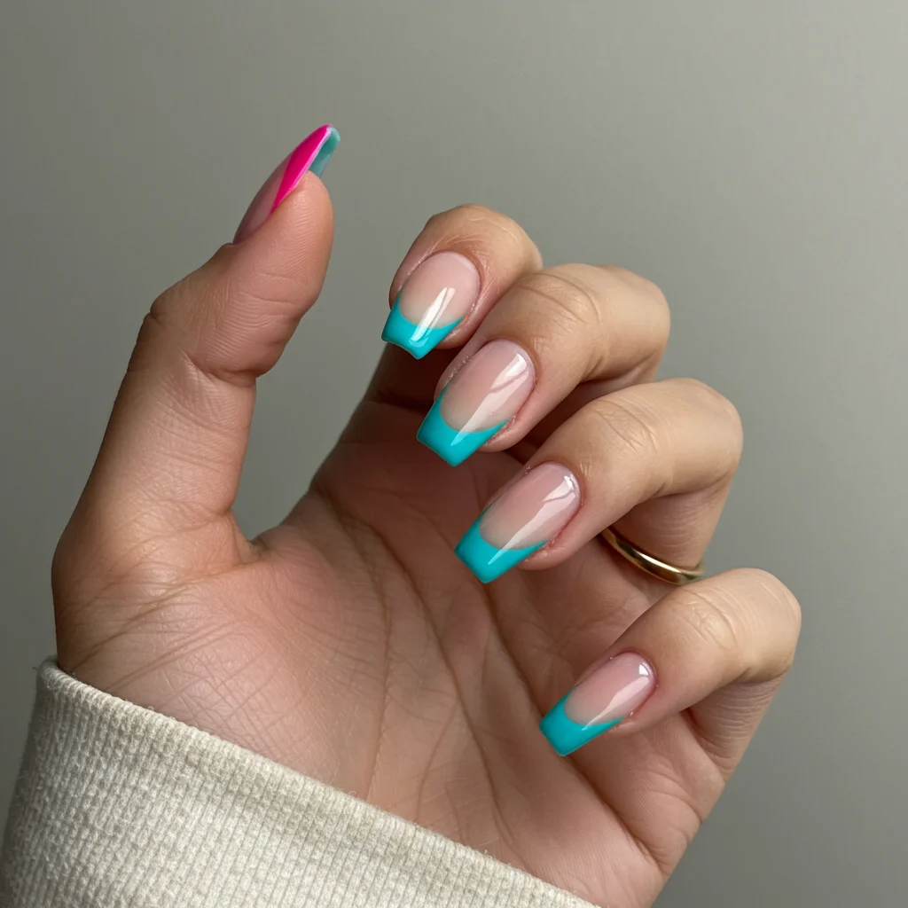 French tips, but make them bold. Swap out the classic white for bright, contrasting colors.