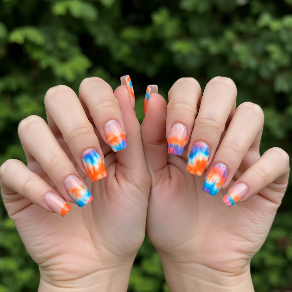 9. Tie-Dye Nails