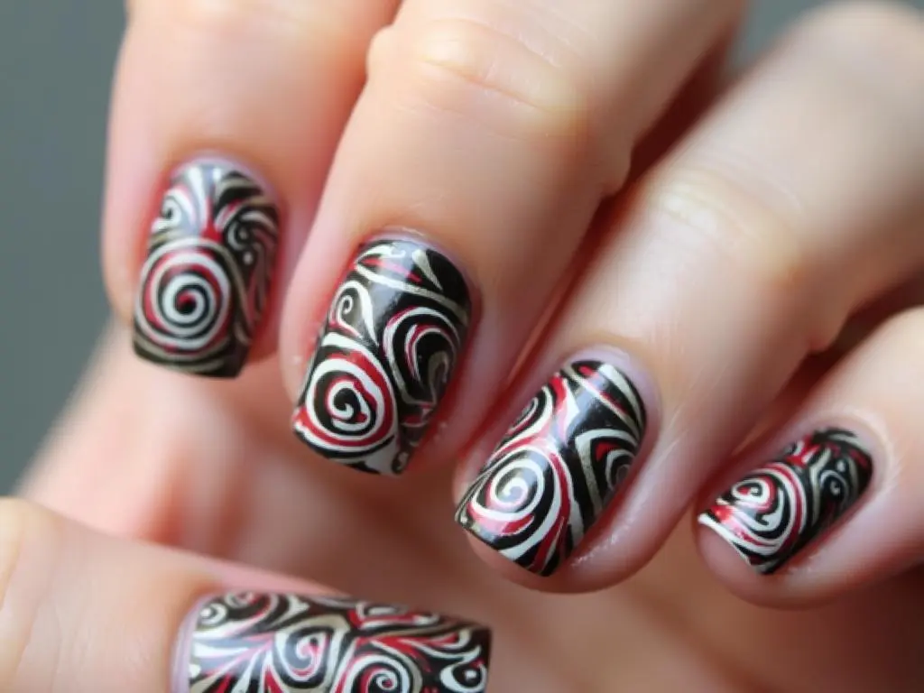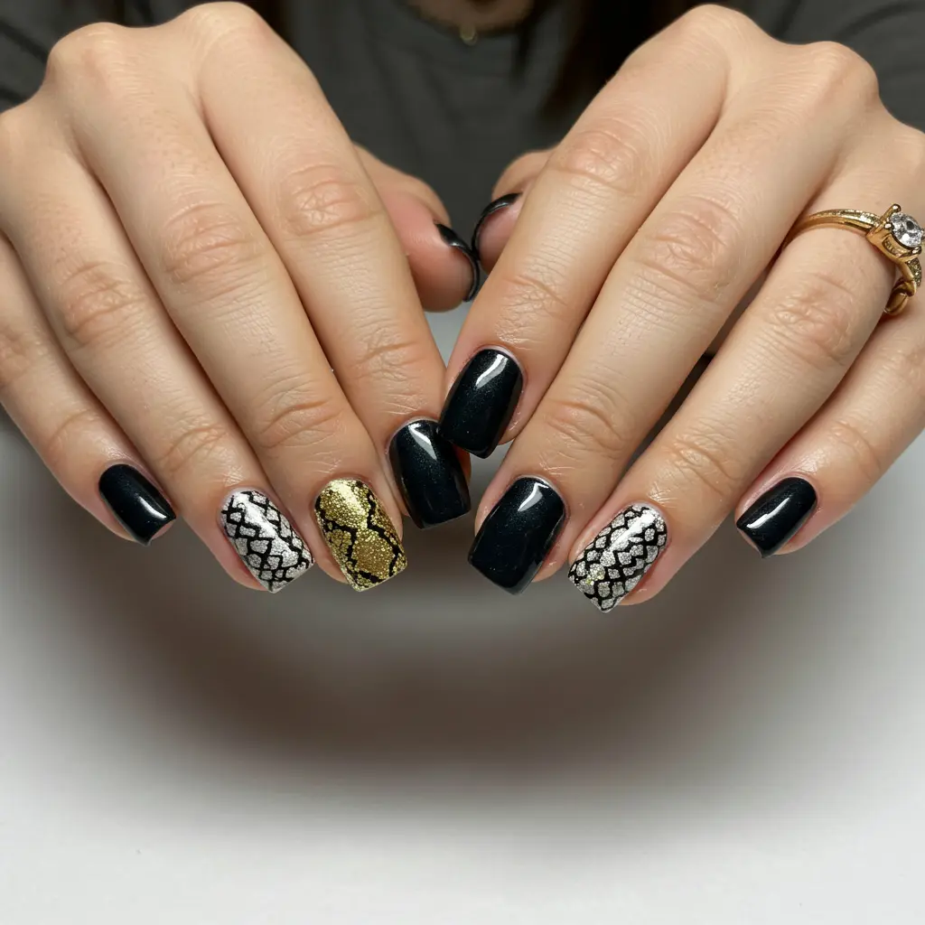 Add an edgy touch with matching snake print nail art in different shades like black and gold or silver and blue.