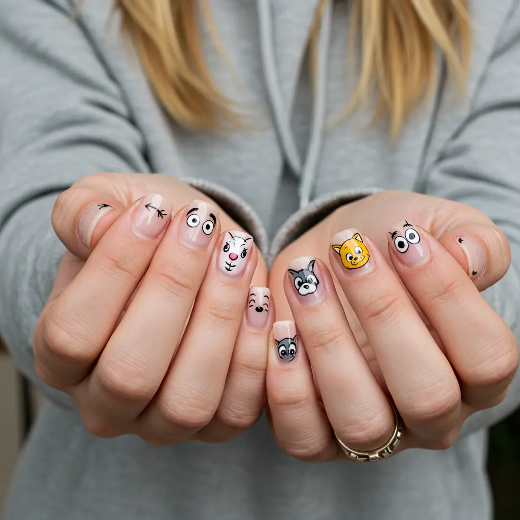 Showcase your favorite cartoon characters on your nails, with each of you choosing a different but complementary design.