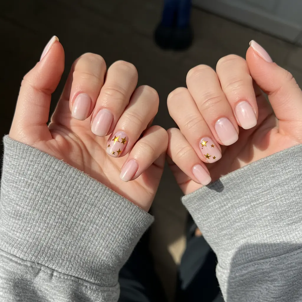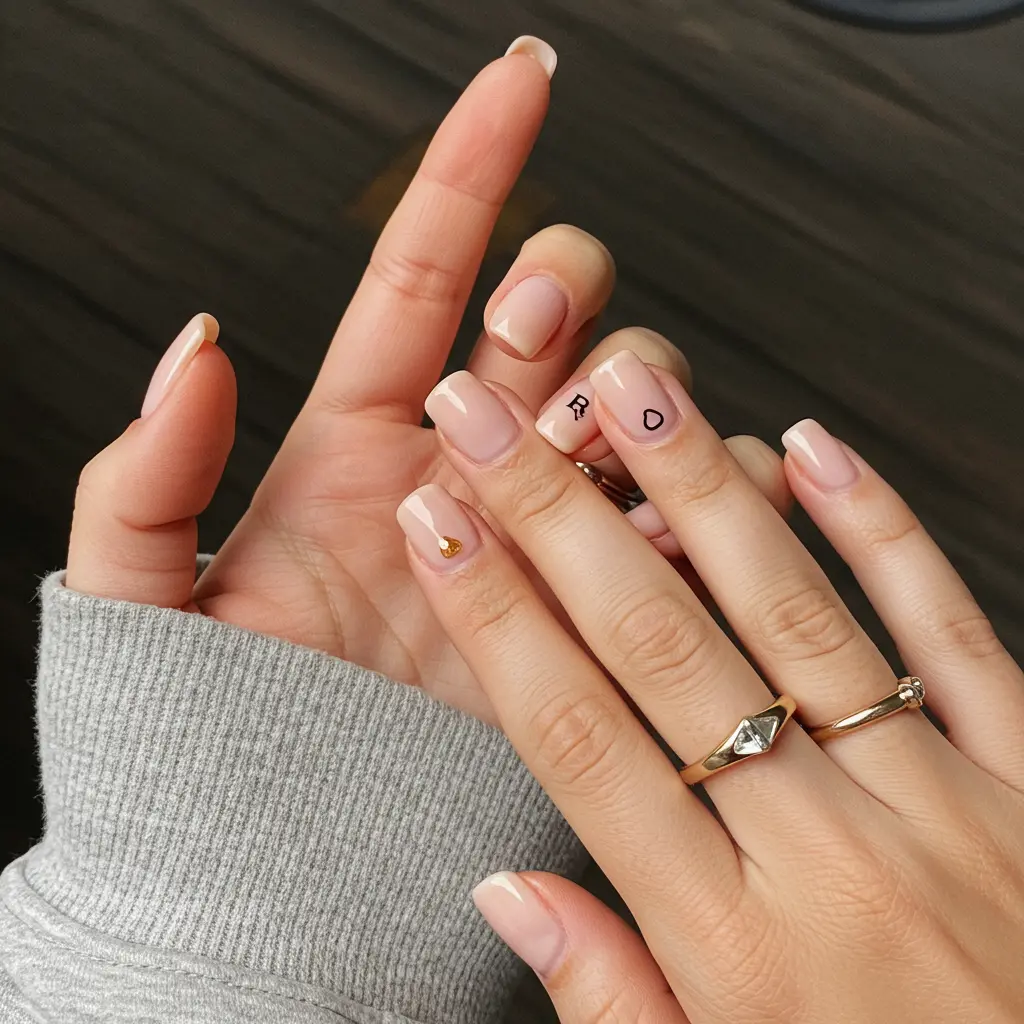 Opt for neutral nude nails with a small design element, such as a tiny heart or an initial, to keep it simple yet elegant.