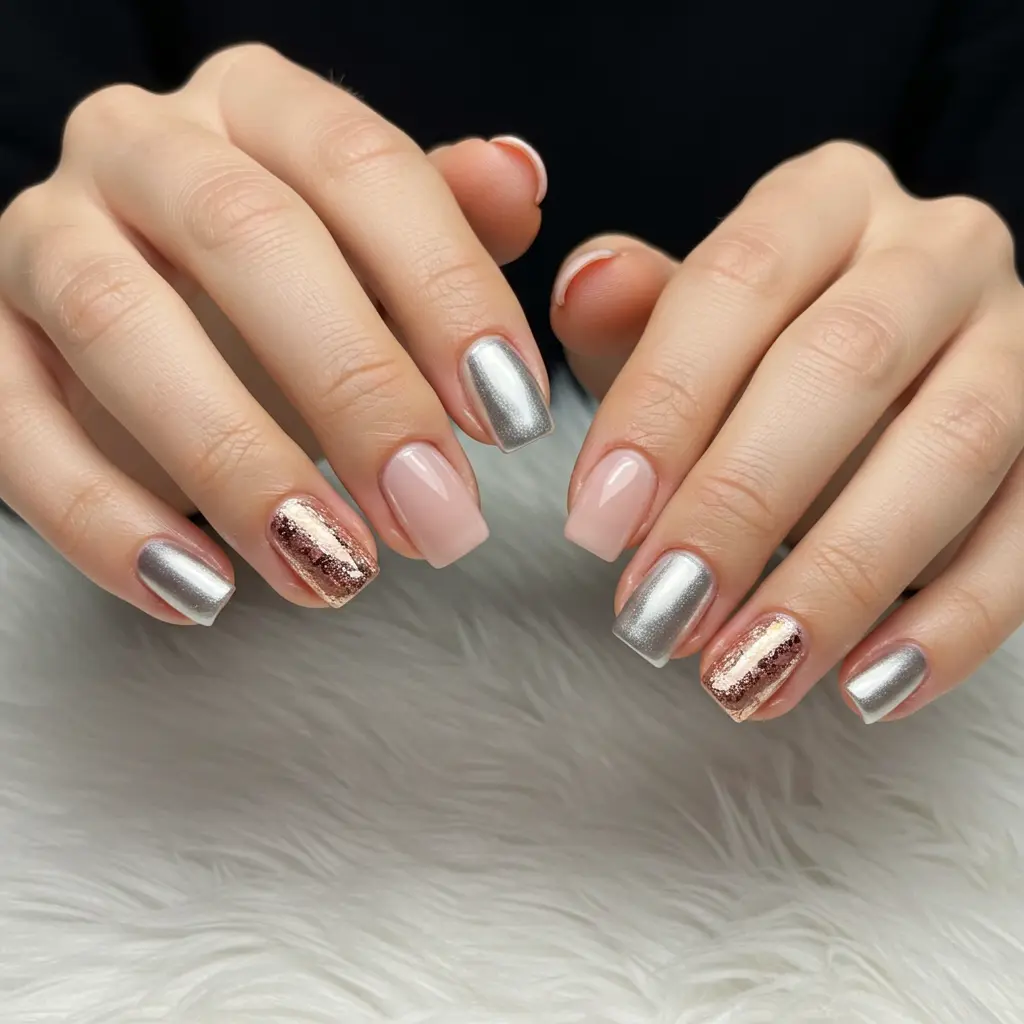 Both of you can opt for metallic foil nails in different colors, such as silver and rose gold, for an edgy but coordinated design.