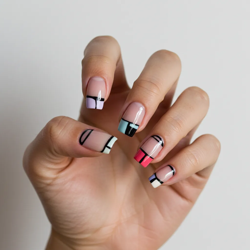 Choose a classic French manicure but in two different pastel or bold colors that complement each other.