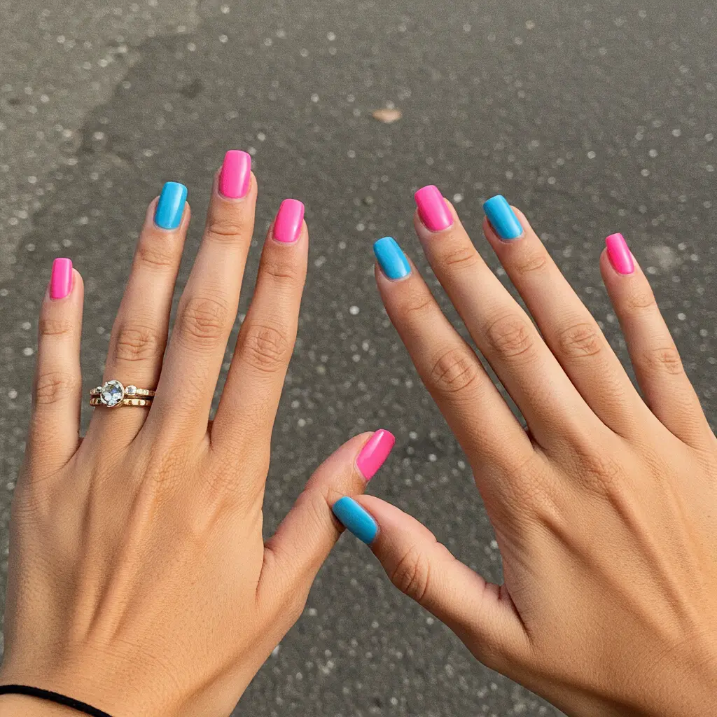 Pick the same nail art pattern but swap the colors one of you wears pink with blue accents, while the other wears blue with pink.