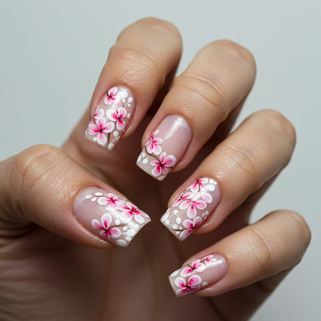 Select matching floral designs with different flowers on each friend’s nails for a fresh and delicate touch.