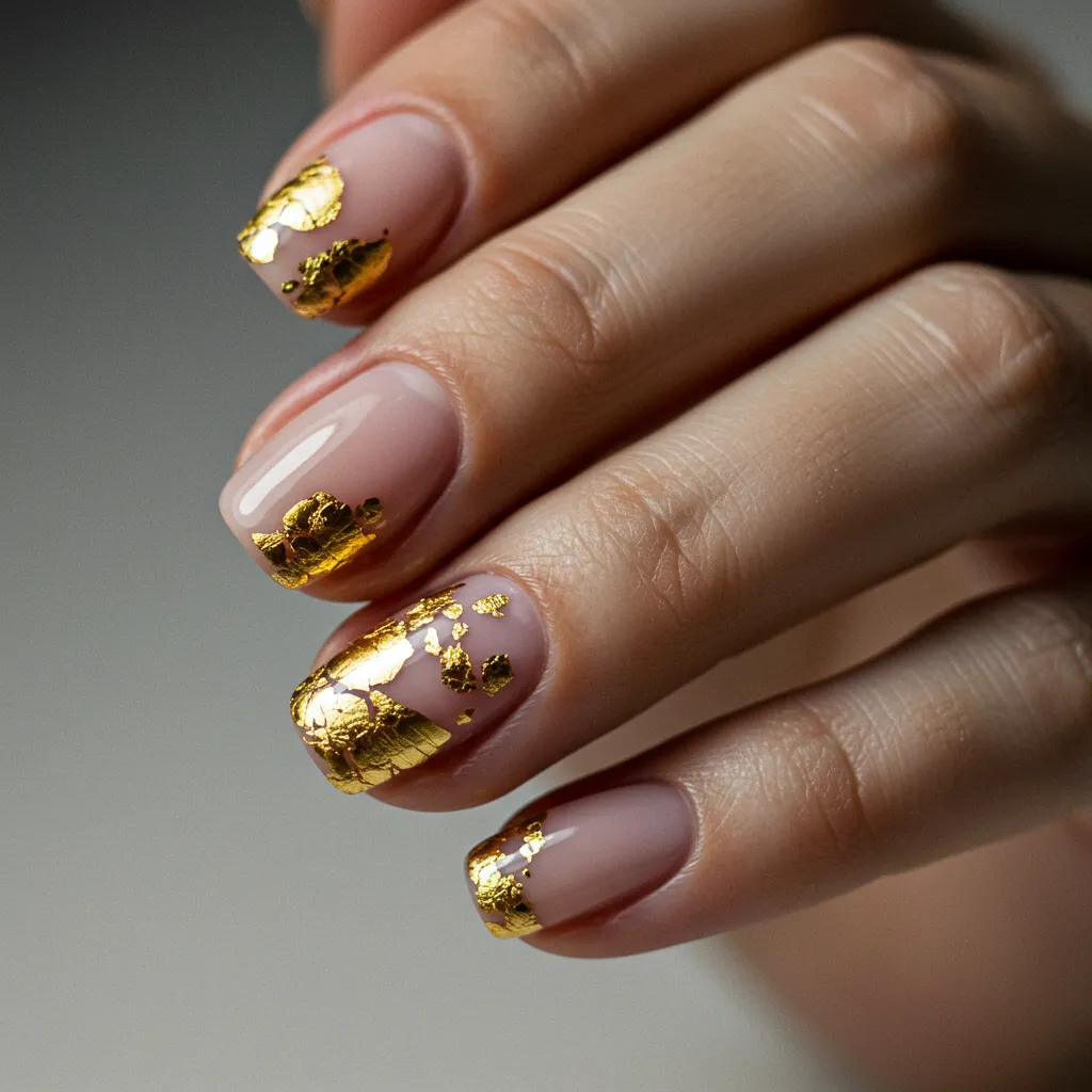 Metallic gold leaf details make for an ultra-chic and sophisticated nail design.