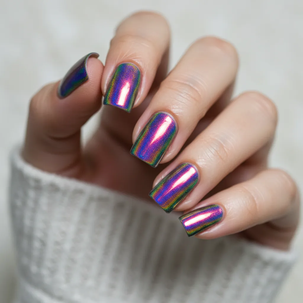 Go for iridescent nails that shift colors under different lighting, creating a mesmerizing effect.