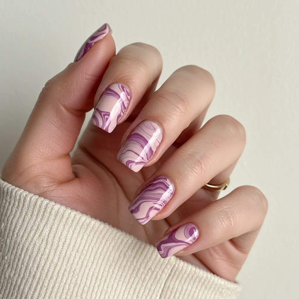 Swirling marble nails in shades of your choice add a luxurious and elegant vibe.