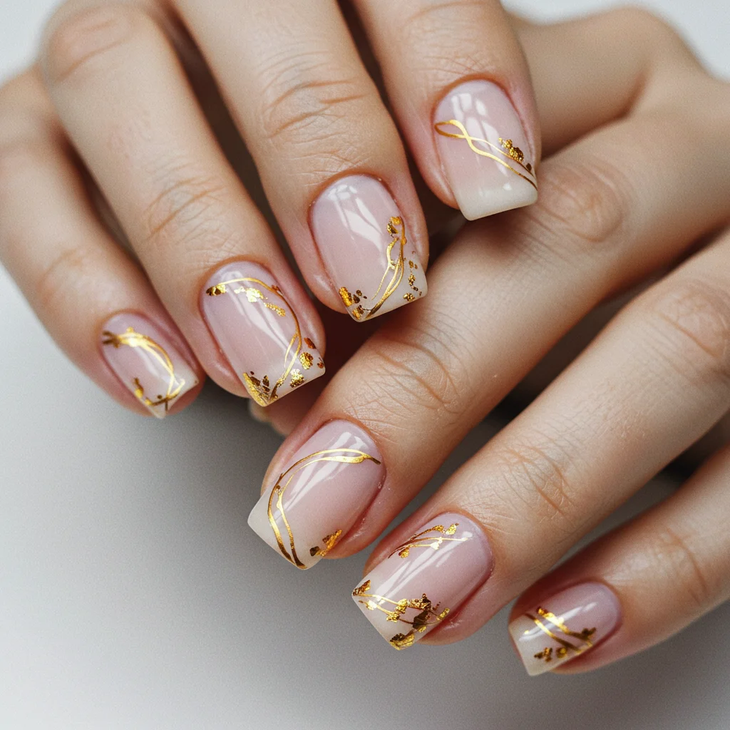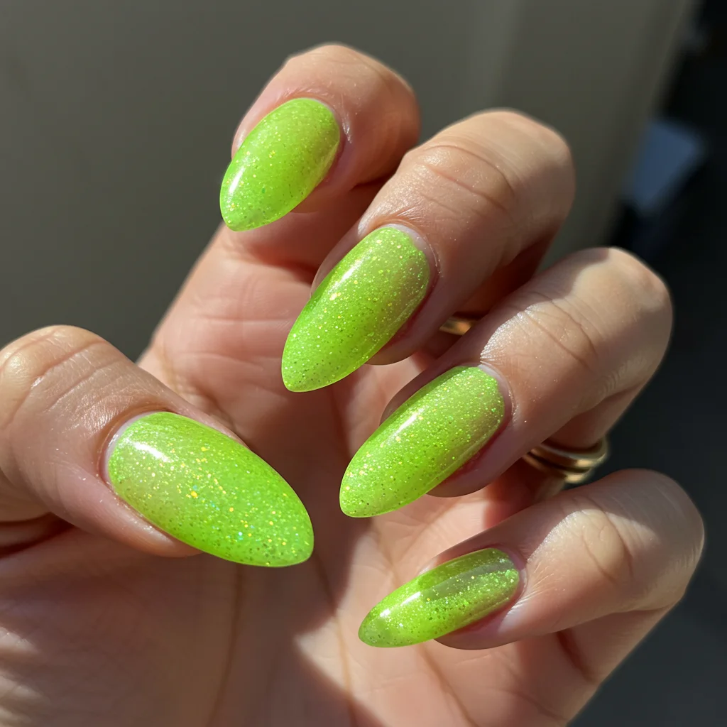 Tiny metallic flakes that elevate any short nail look with elegance.