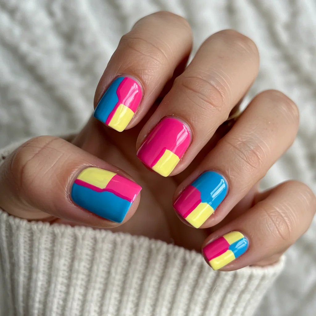 A bold mix of colors and geometric shapes for a high-fashion effect.