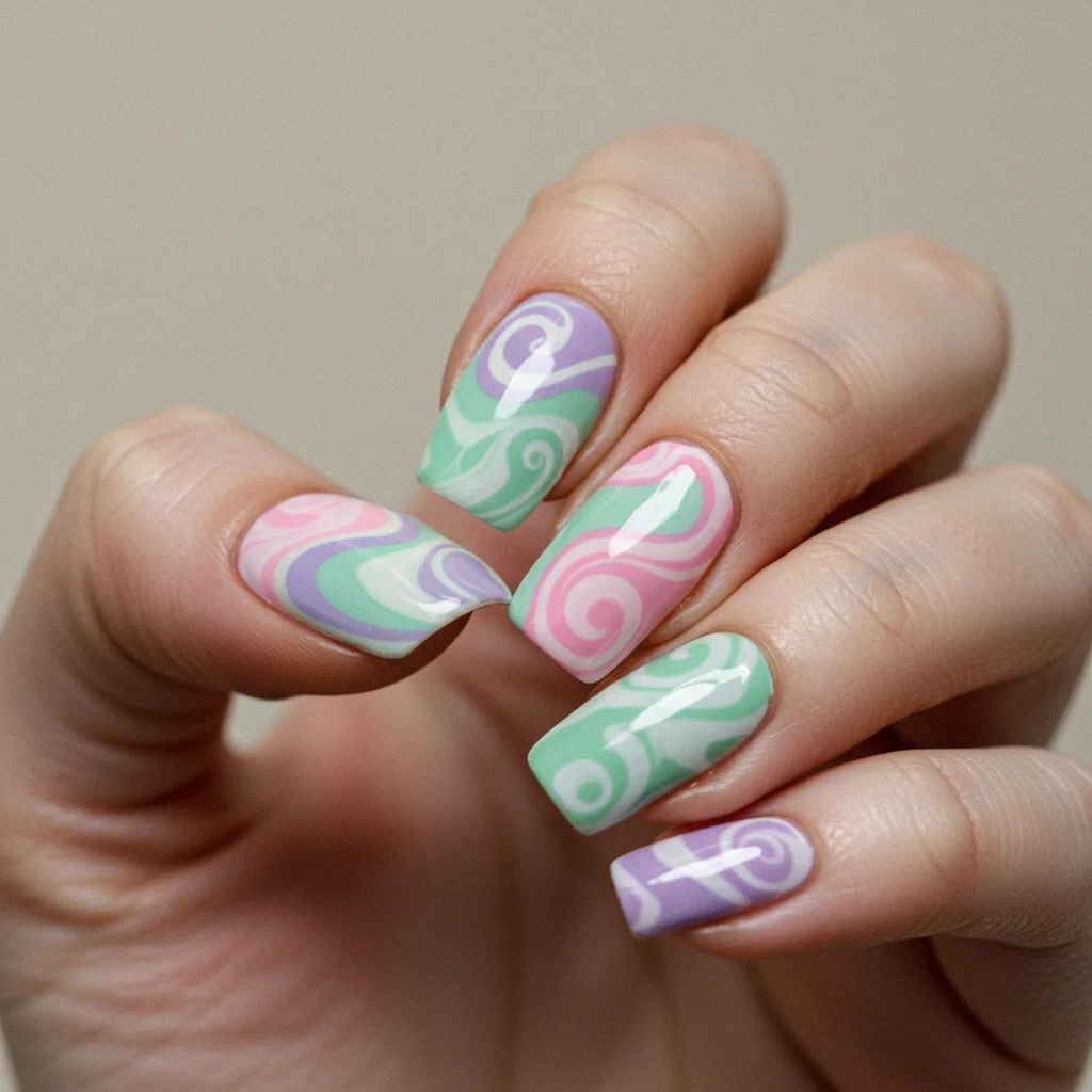 A delicate mix of pastel-colored swirls for an artsy yet minimal design.
