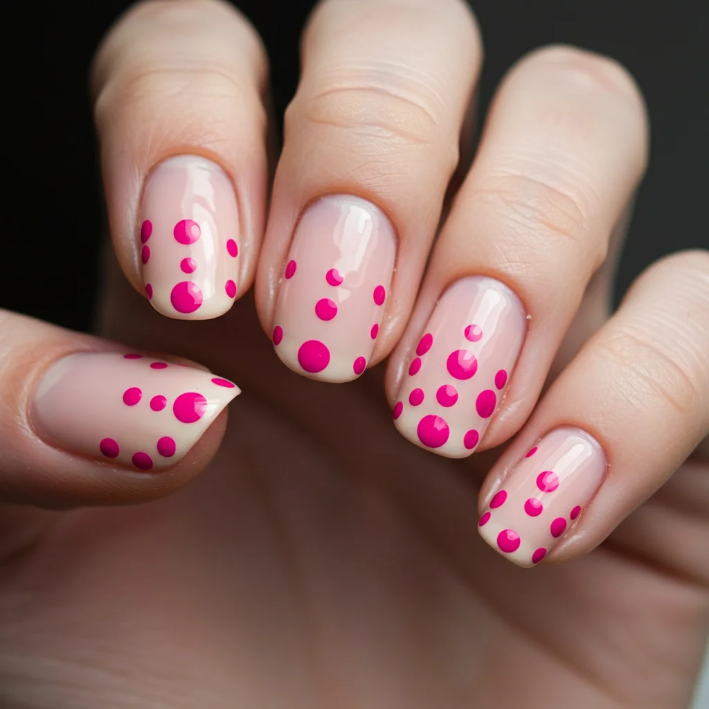 A nude base with tiny pink dots gives a simple yet stylish touch.