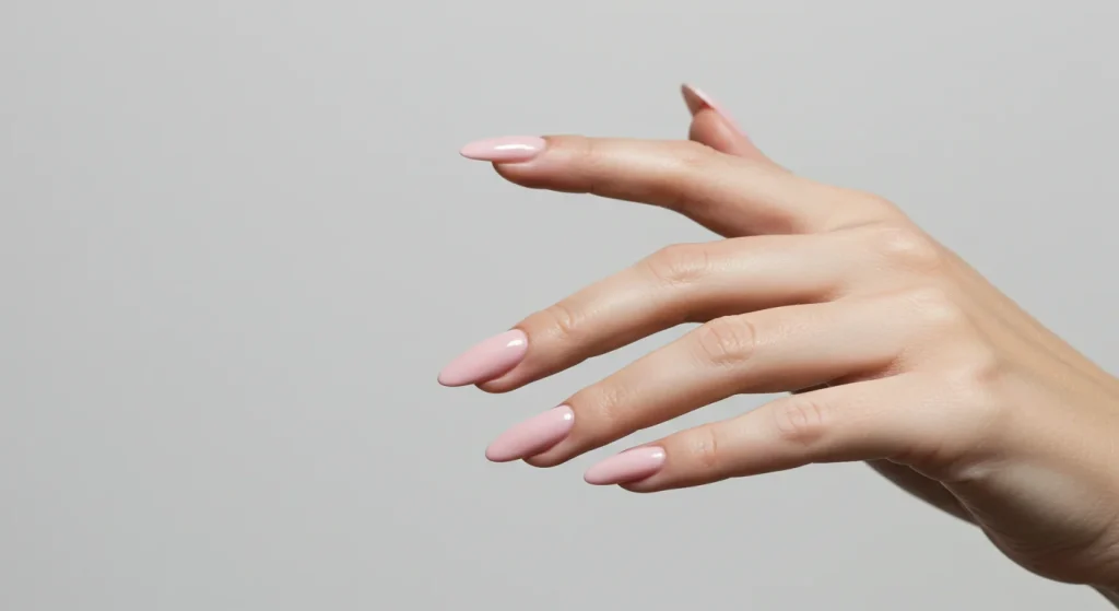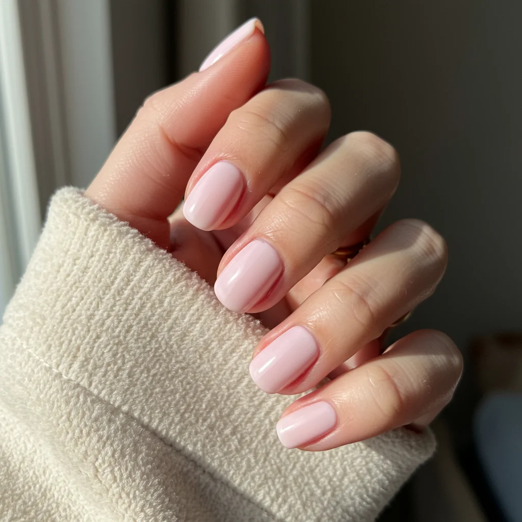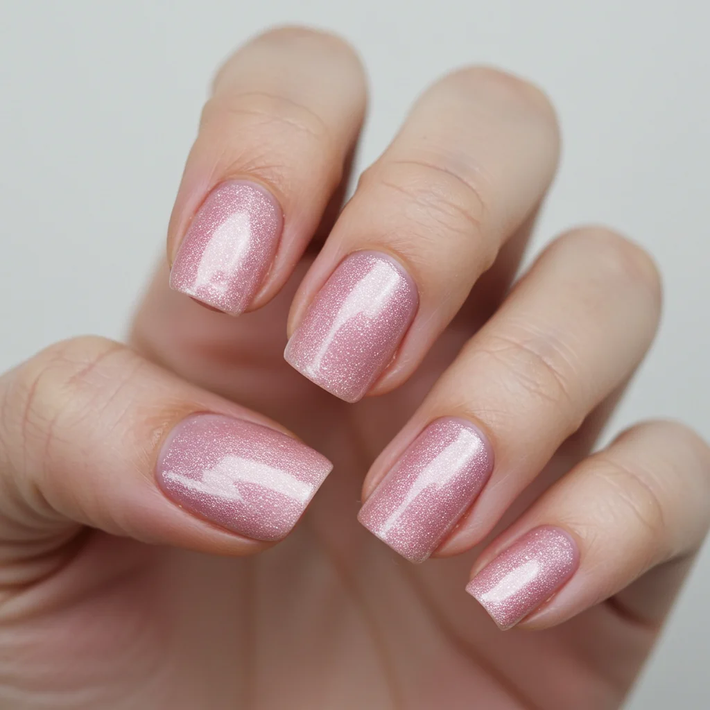 A sheer pink with a hint of shimmer is perfect for a soft, glowing effect.