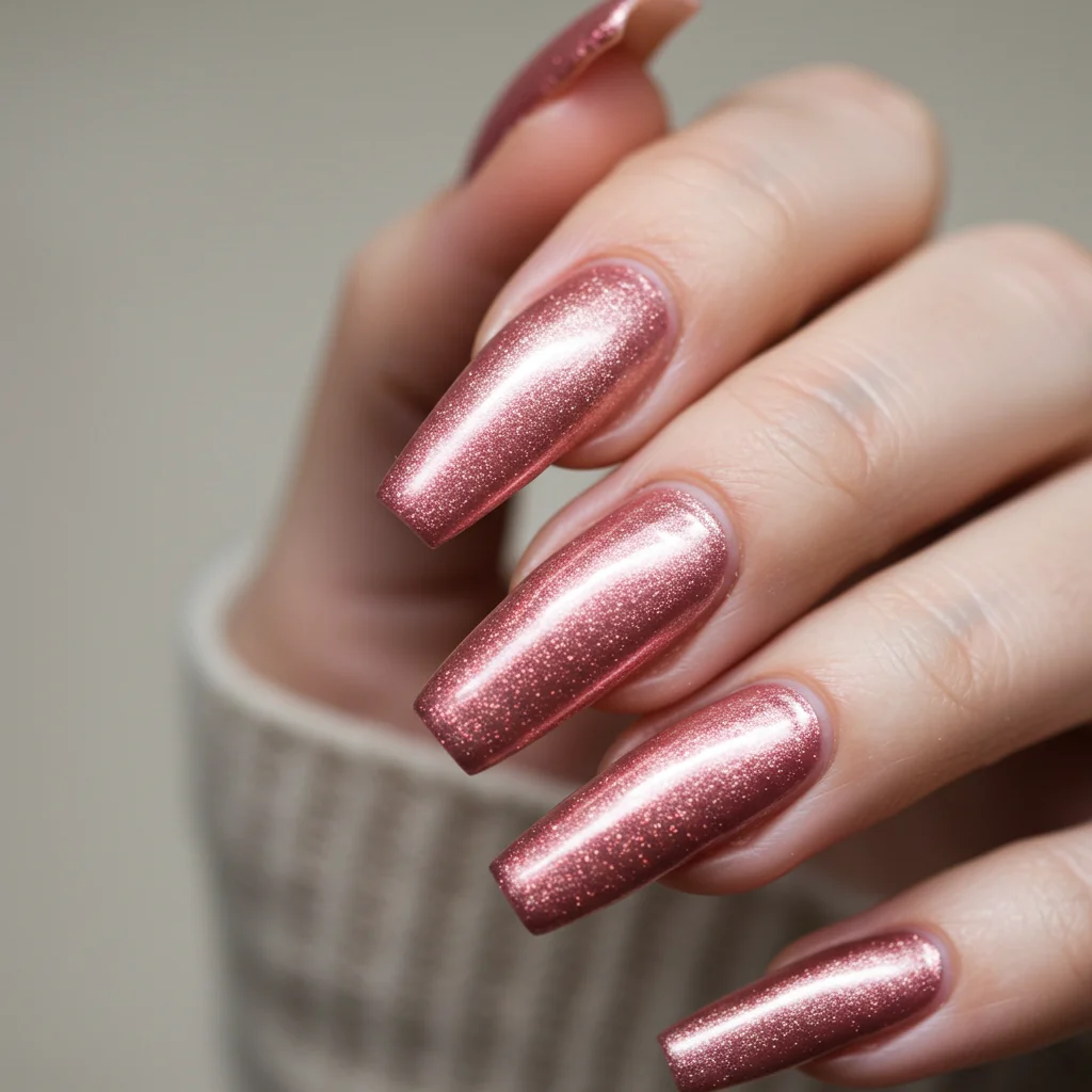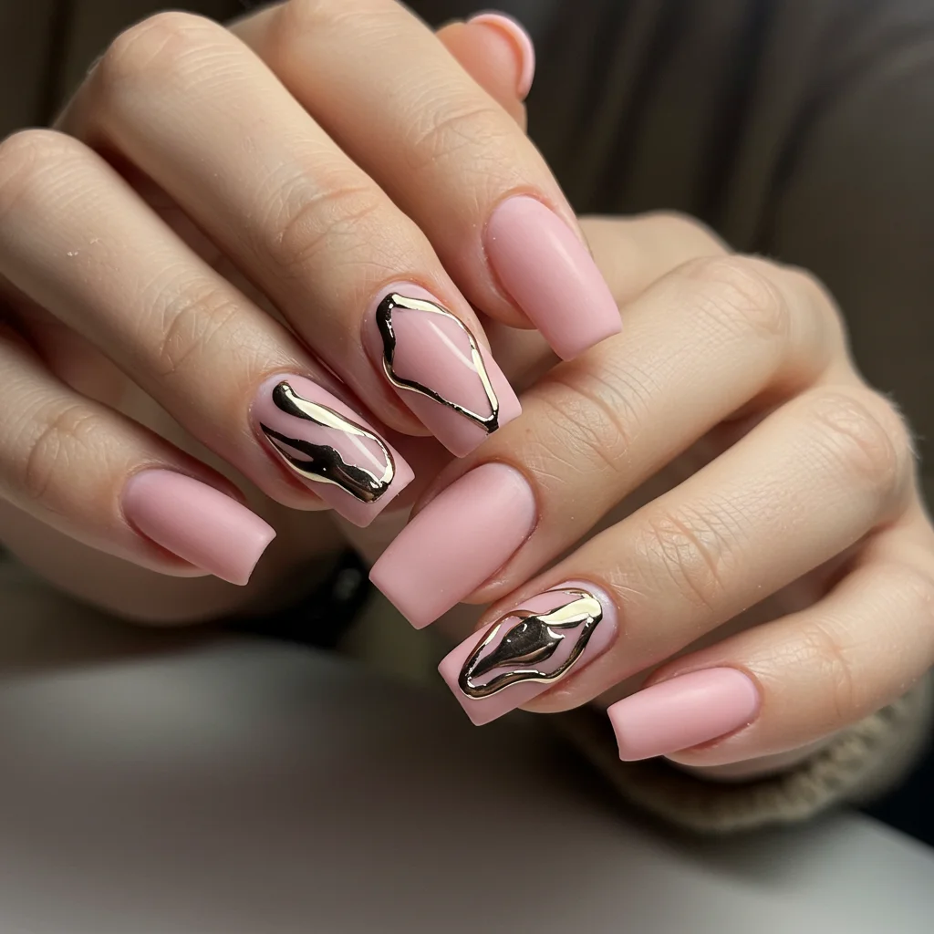 A soft pink base with rose gold accents is perfect for a subtle glam moment.