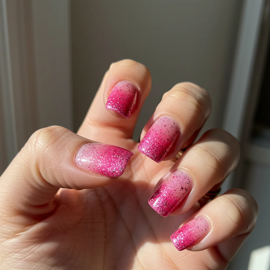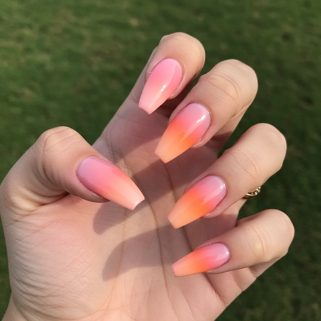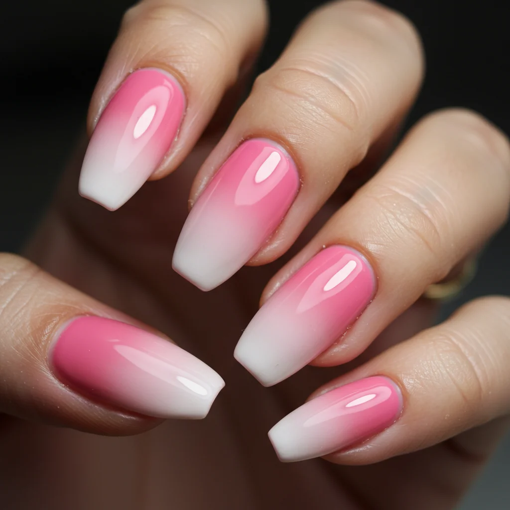 A gradient effect blending blush pink into nude creates a dreamy, sophisticated look.
