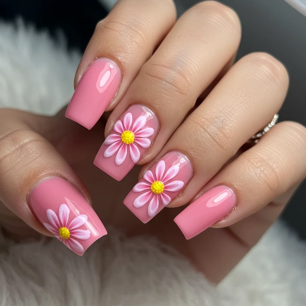 Tiny white daisies on a pink background bring fresh, floral summer vibes.