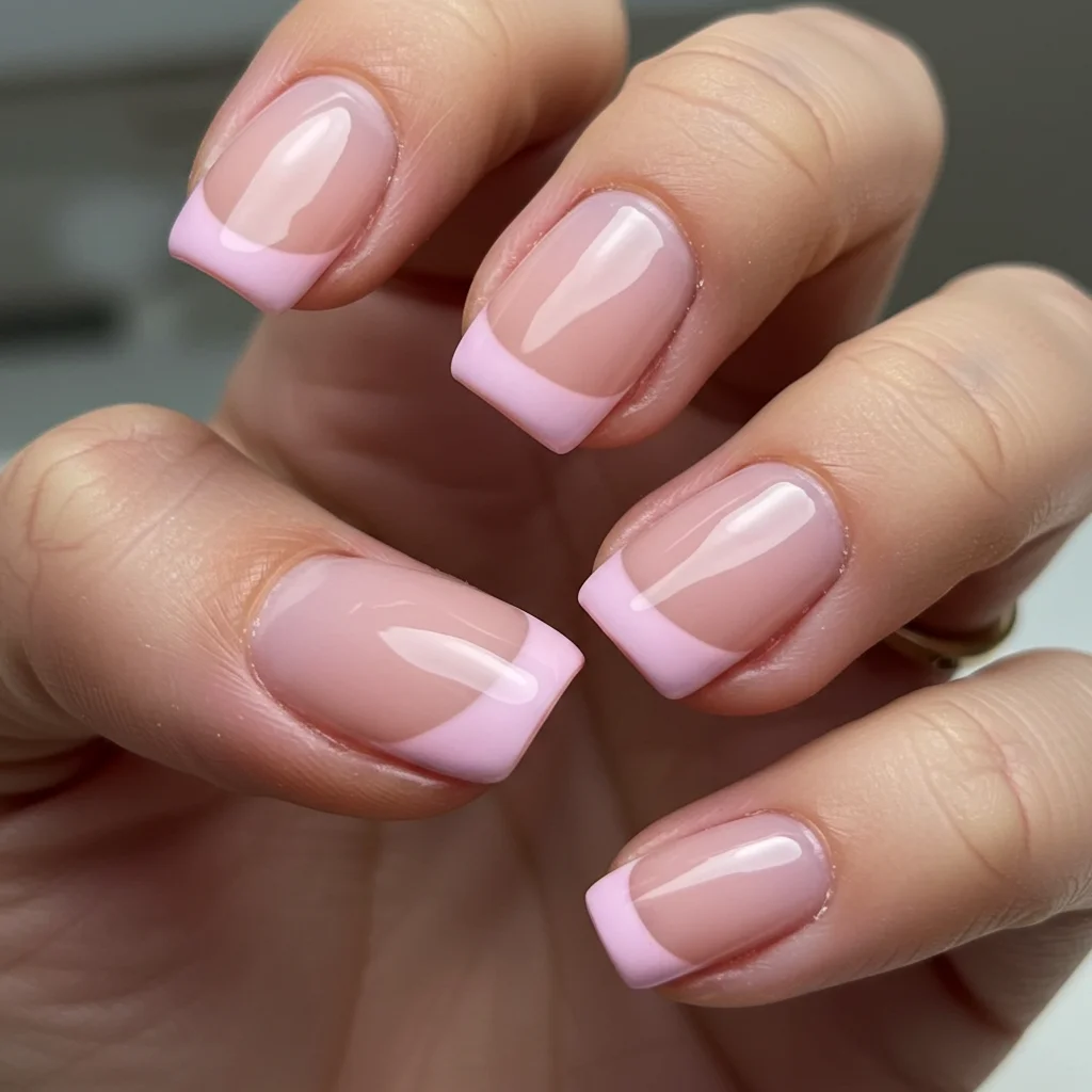 A subtle twist on the classic French manicure, pastel pink tips add a delicate touch.