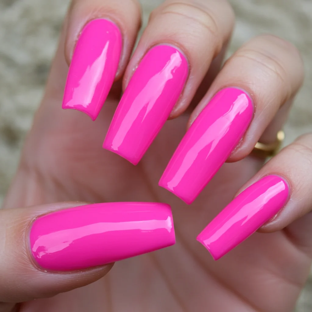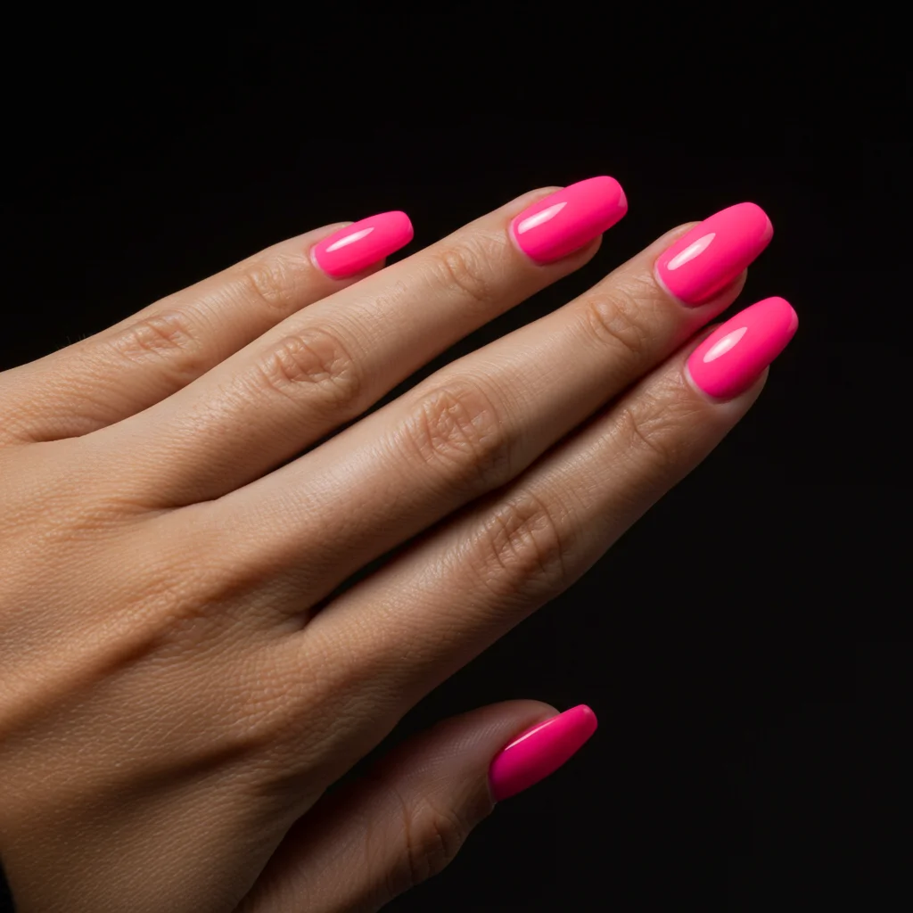 Make a bold statement with vibrant hot pink nails that radiate confidence.