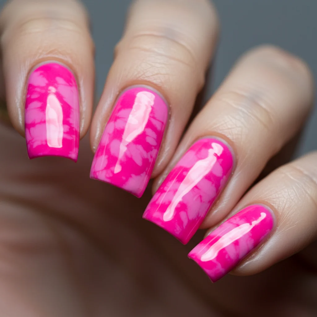 A groovy pink tie-dye effect is perfect for a fun and unique nail look.