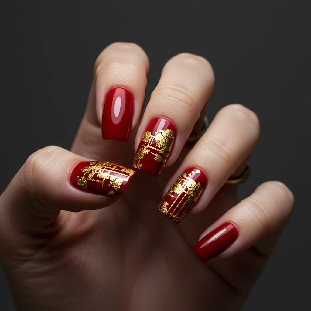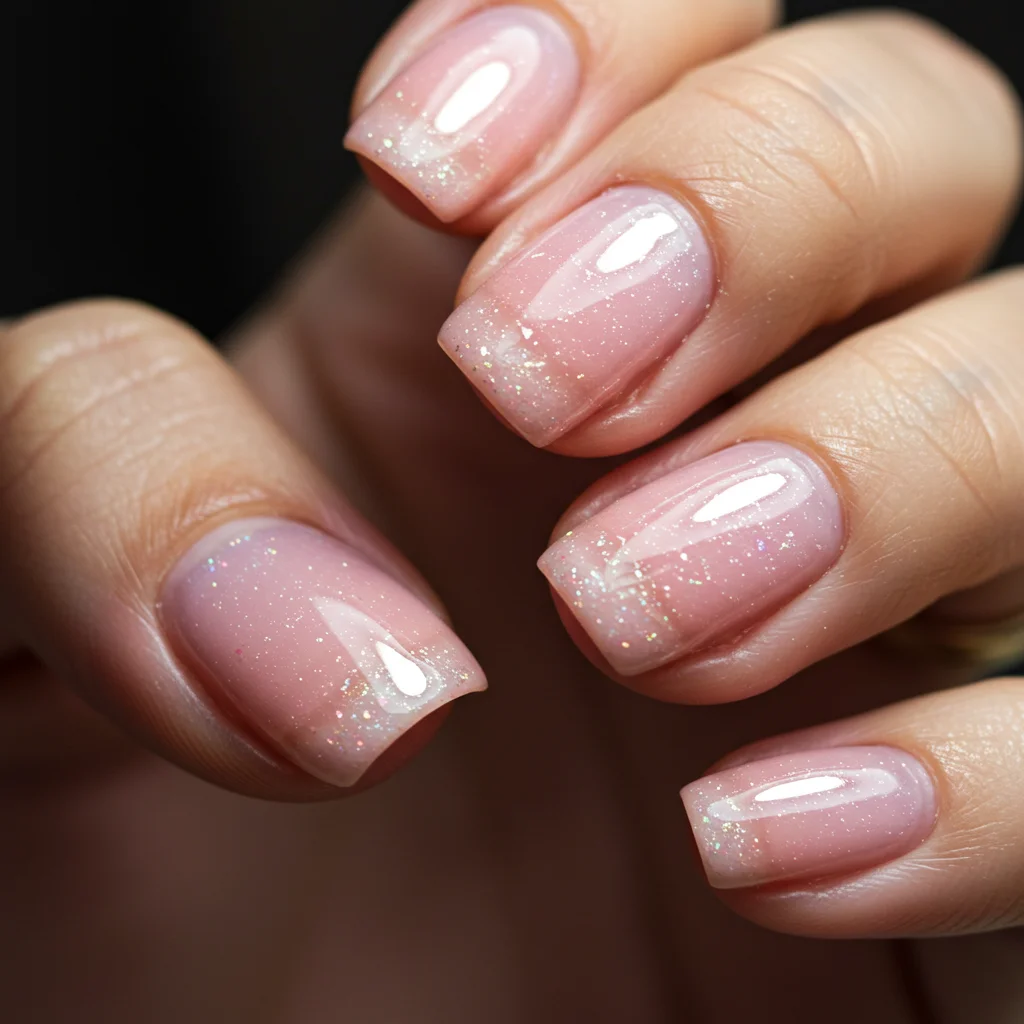 Minimalist nails with flecks of gold foil for a touch of luxury.