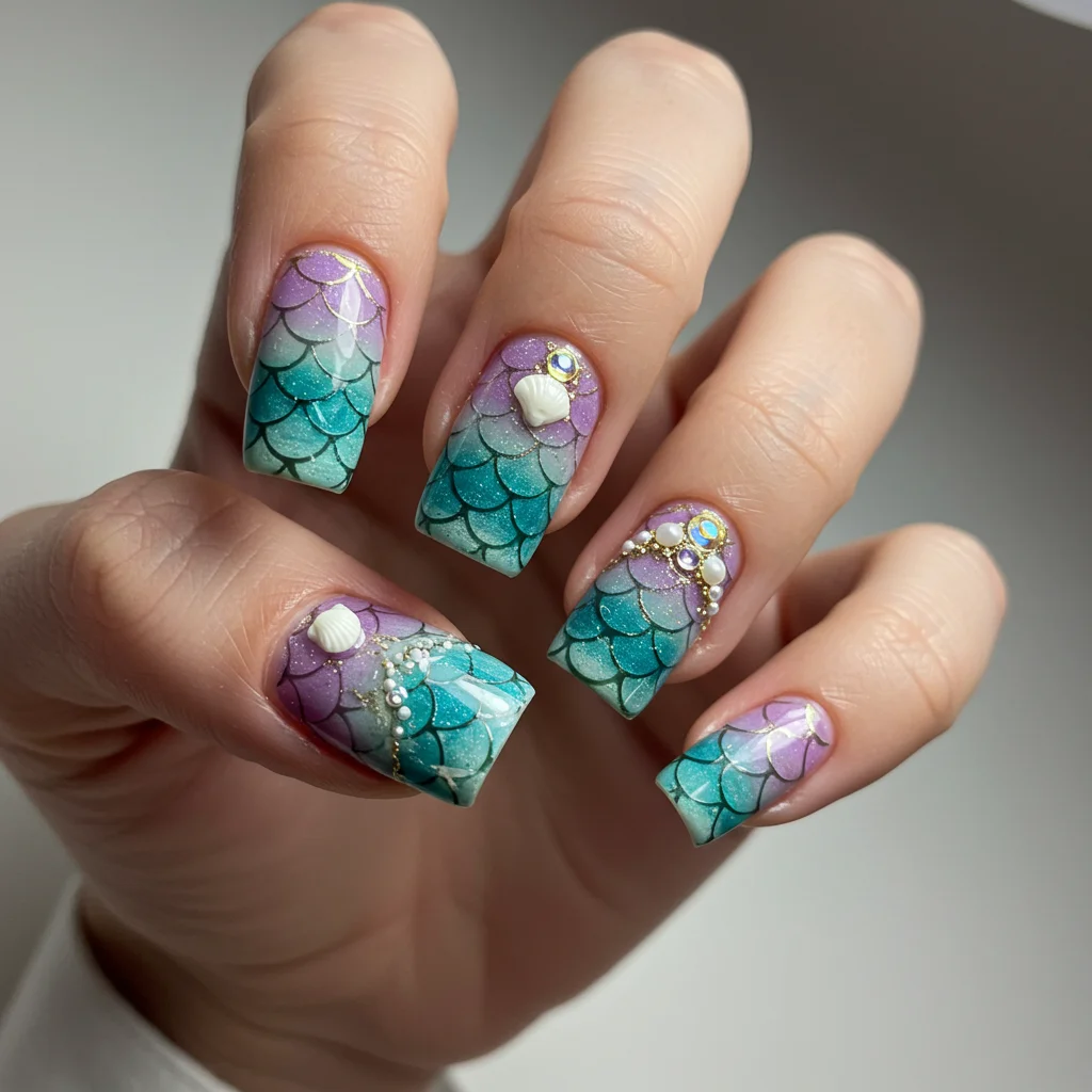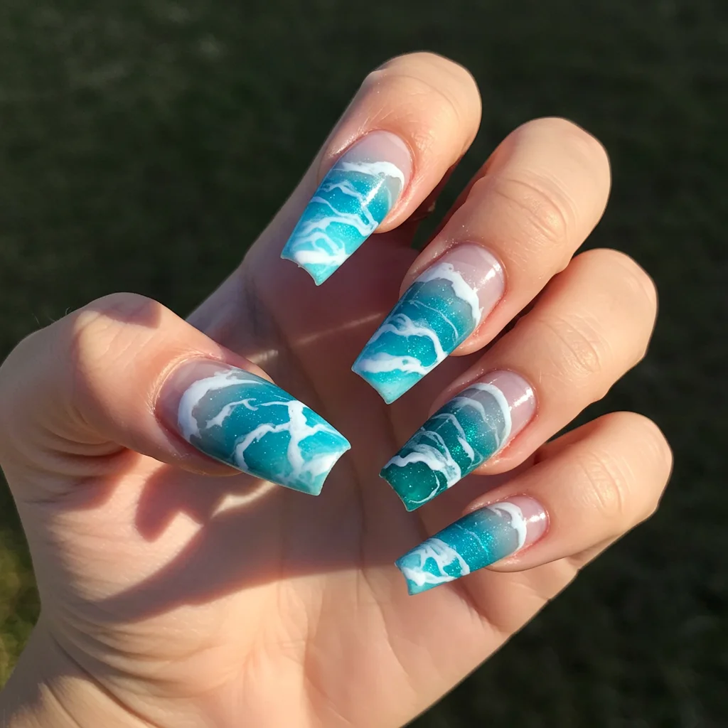 A mix of blues, purples, and shimmers for an oceanic feel.