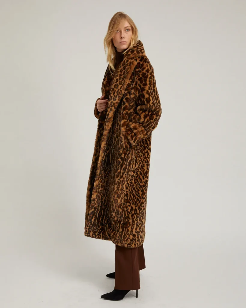 - Texture Play: The busy visual texture of the leopard print is the star. Keep the other textures in the outfit simple and classic like smooth leather and soft knits to let the coat do all the talking.