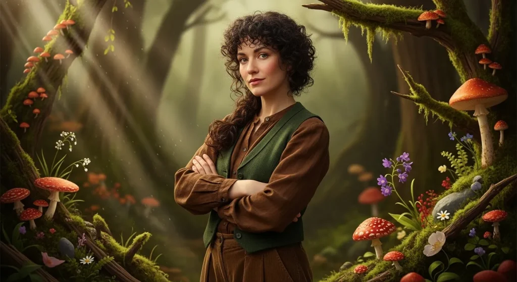 - Styling Tip: Accessorize with trinkets that look like found objects a mushroom-themed pin, a frog-shaped earring, or a bag covered in patches.