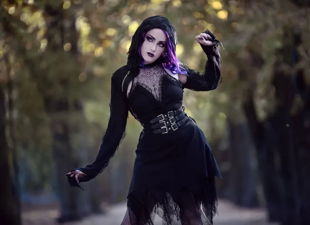 - Modern Goth: All black, with pops of white, silver, or deep purple.