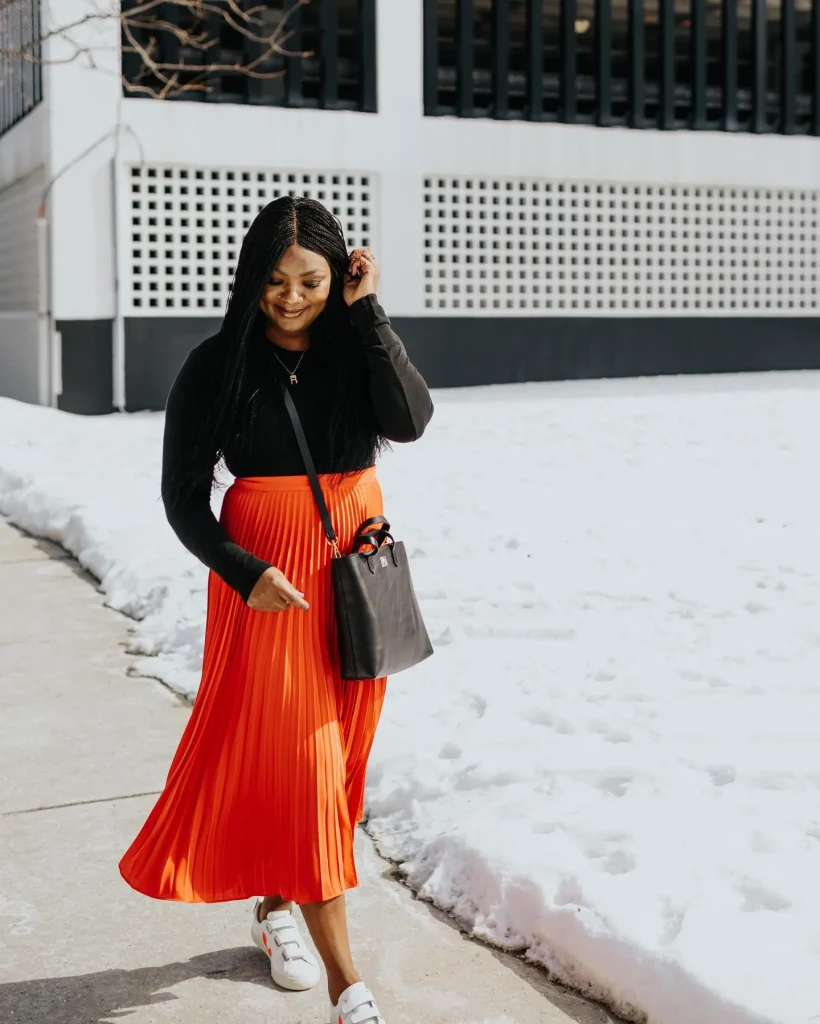 - Styling Tip: In cooler weather, add sheer or opaque black tights. This creates a continuous dark line from the waist down, making the look feel more cohesive and winter-appropriate.