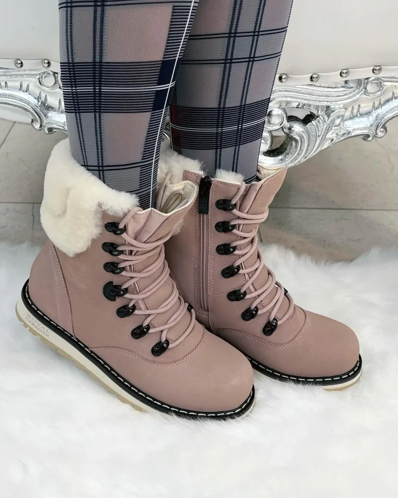 • Texture Play: Often a mix of textures like waterproof rubber, leather or suede uppers, and a fuzzy shearling or faux-fur lining, which adds a cozy, stylish element.