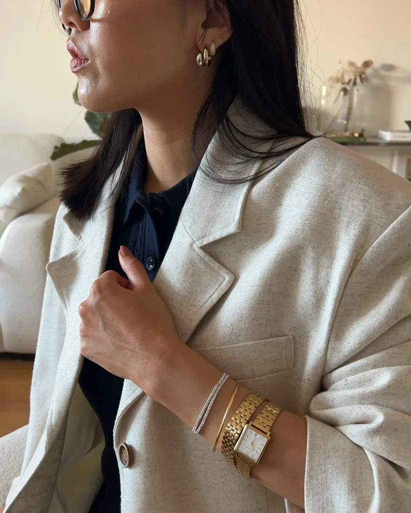 - Layering Logic: Accessories are the finishing touches to your layered outfit. A slim belt cinches an oversized blazer or dress, while delicate necklaces layer neatly over a V-neck or crewneck top. Small bags sit proportionately with your overall silhouette.