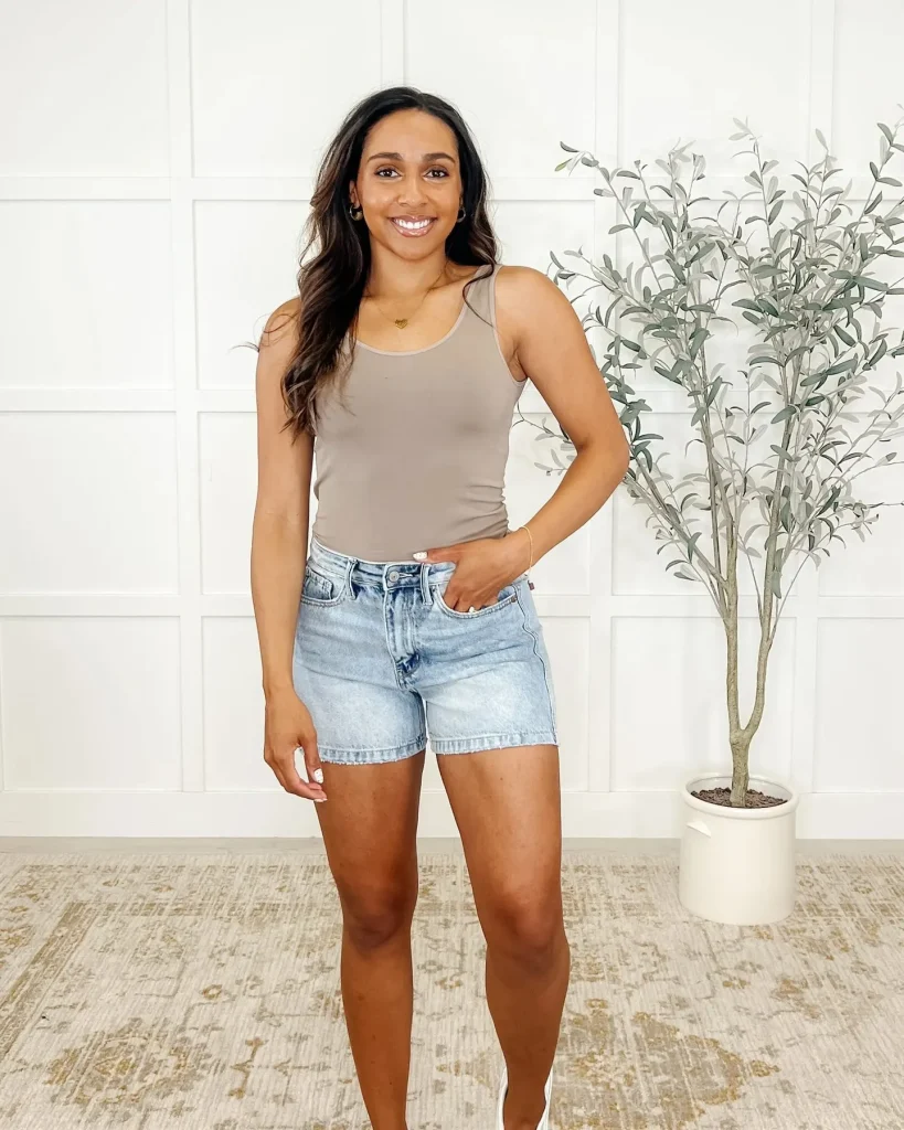 - Styling Sweet Spot: Pair high-rise denim shorts with a simple, tucked-in white tee and sleek sneakers or sandals. Add a belt to emphasize the waistline for a truly put-together and leg-lengthening casual look.