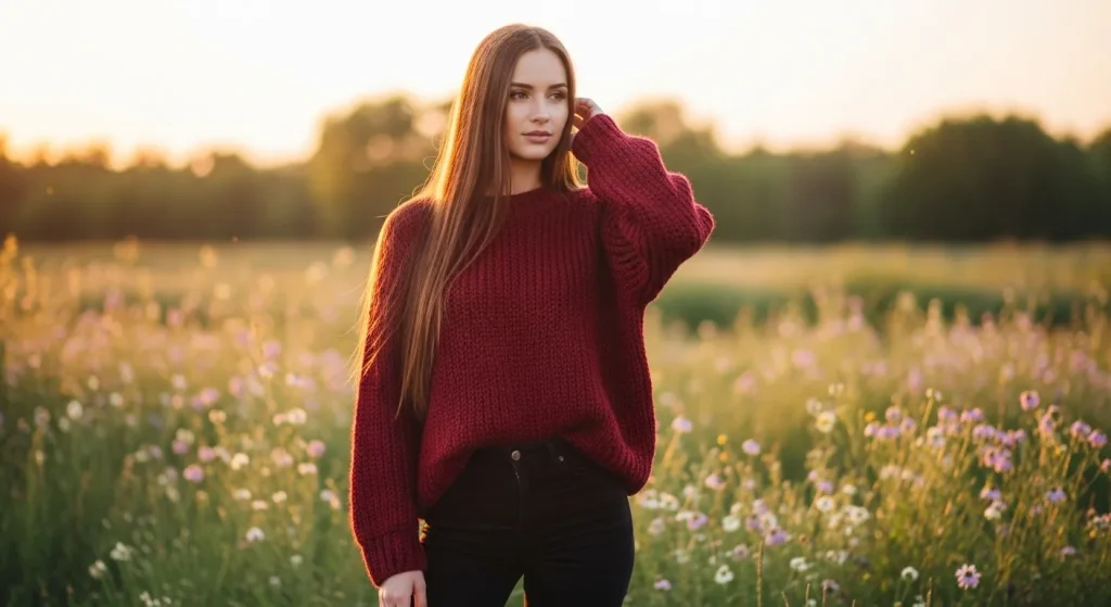 - Silhouette Management: The inherent bulk of a chunky knit is best balanced by pairing it with bottoms that have a sleeker profile, such as straight-leg jeans or a slip skirt. A “French tuck” (tucking just the front) can define the waistline without adding bulk around the hips.