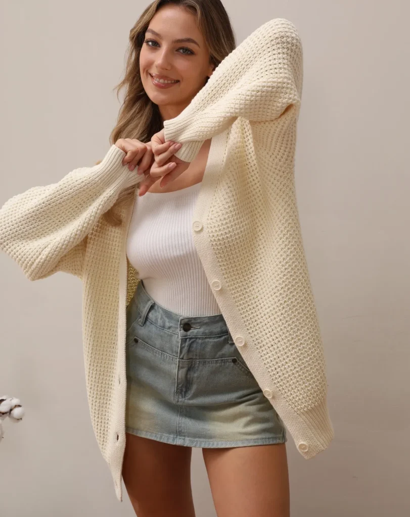 - Signature Item: A soft, slouchy Oversized Cardigan in a cotton, cashmere, or merino blend.