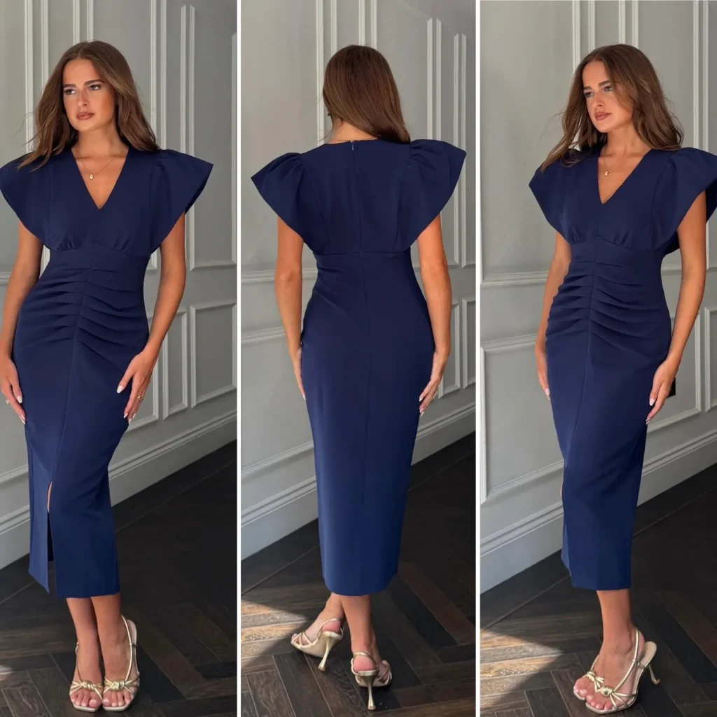 - Layering & Accessorizing: Pair with suede pumps or tall boots. A simple pendant necklace works well with the V-neckline. A trench coat is the perfect outerwear for a daytime wedding.