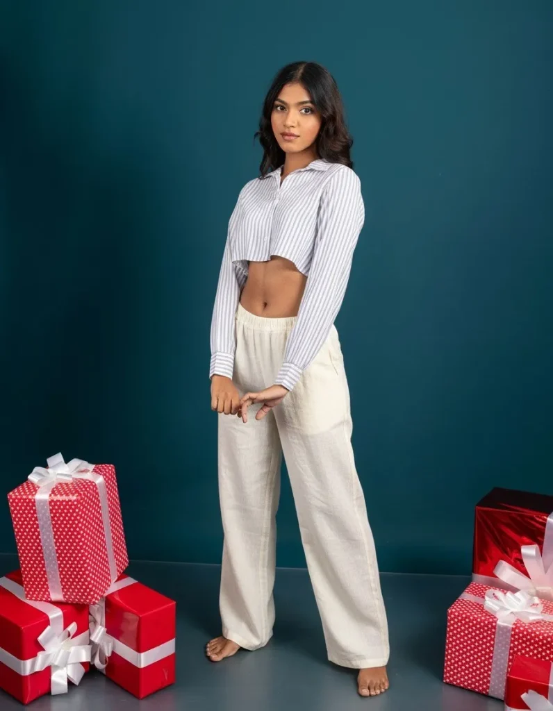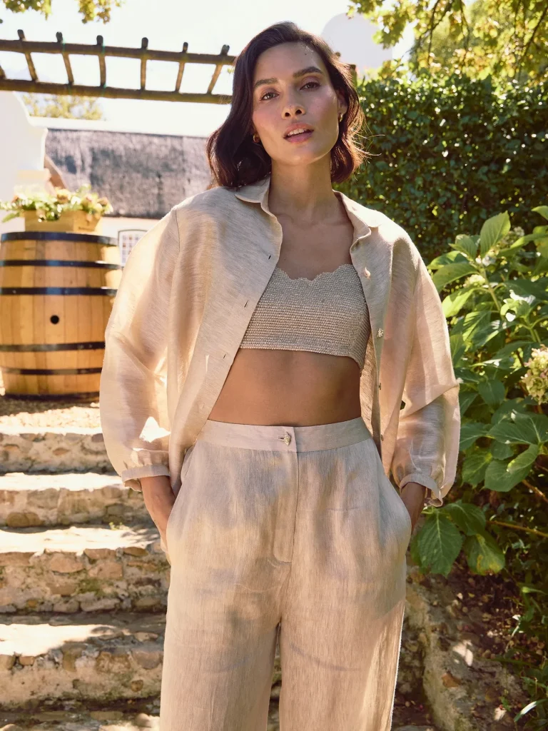 - Silhouette Management: The relaxed, flowy silhouette of the linen pants needs to be balanced by a more defined top (cropped or tied-up button-up) to highlight the waist and prevent looking shapeless.
