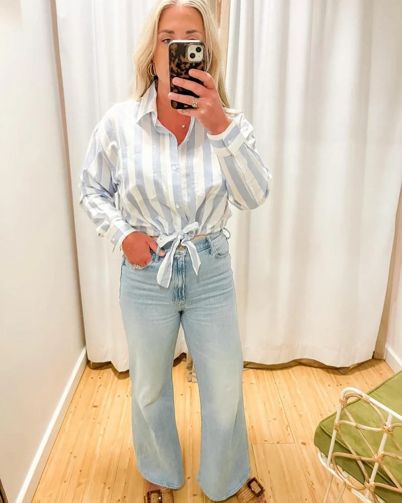 - Body Positivity Lens: Mom jeans often provide a comfortable, relaxed fit around the hips and thighs. The tie-front allows you to adjust the fit at the waist.